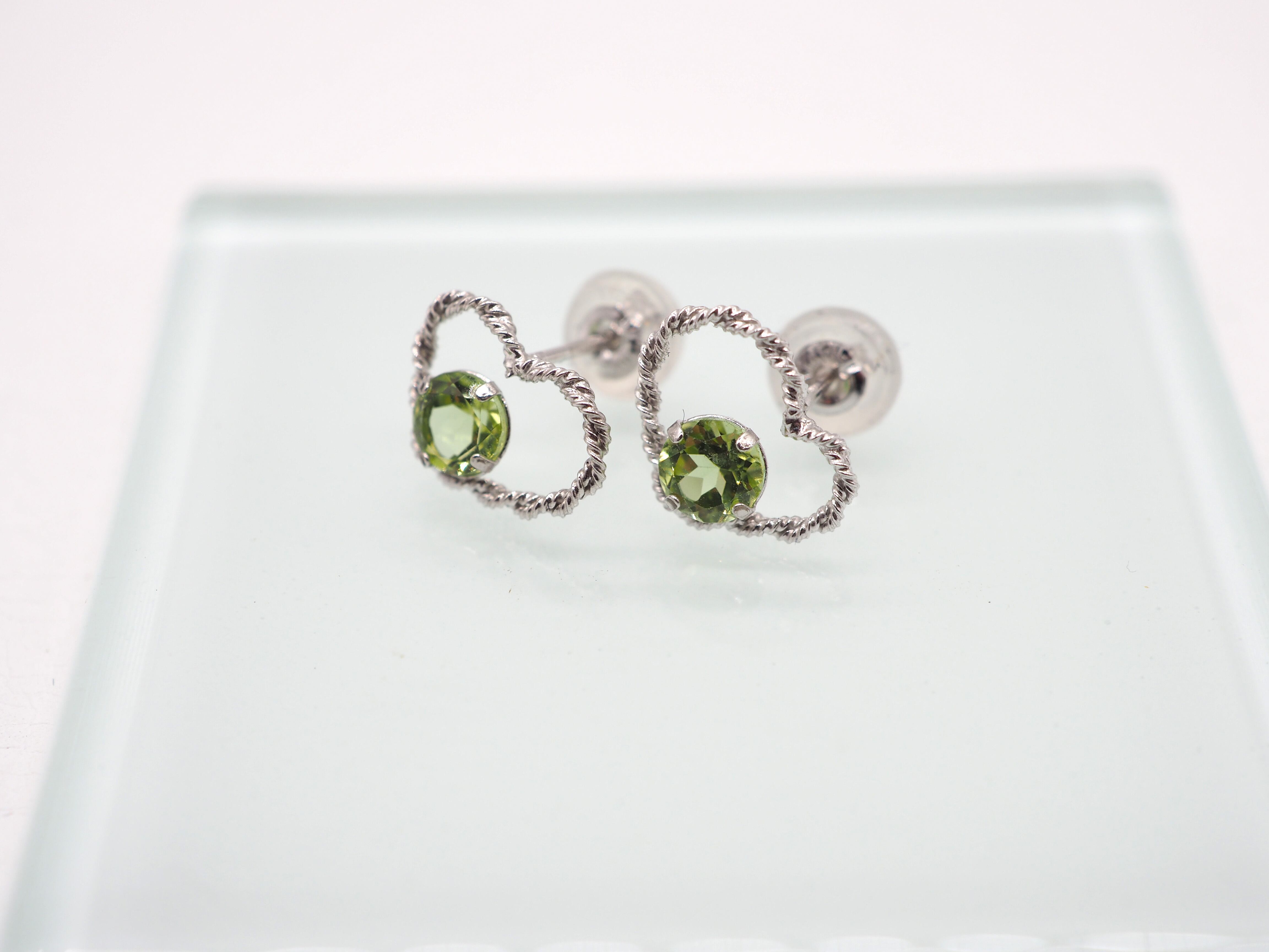 鮮やかな緑色が魅力的なペリドットを使用したK14WGピアス!優れた透明感と輝きが、大人の女性の耳元を美しく彩ります。カジュアルからフォーマルまで、幅広いシーンでお楽しみいただけるデザインです。