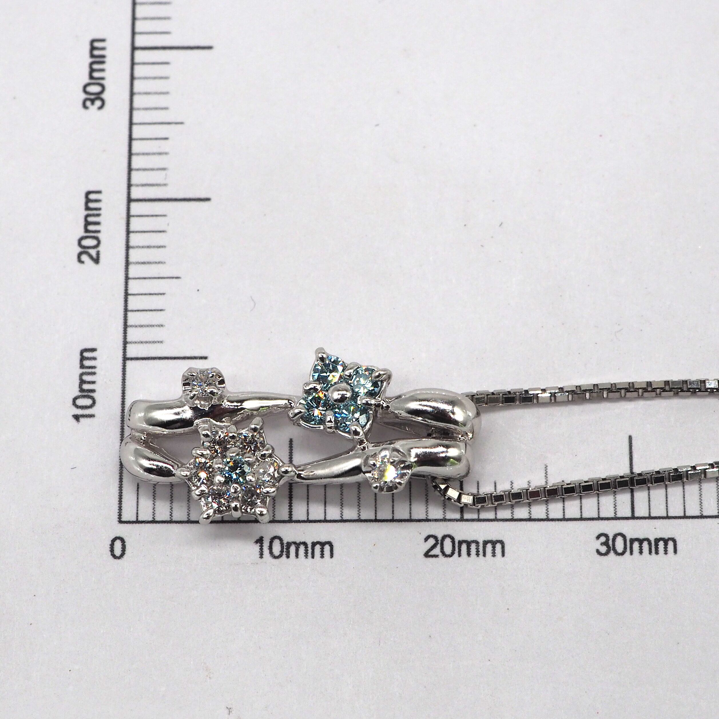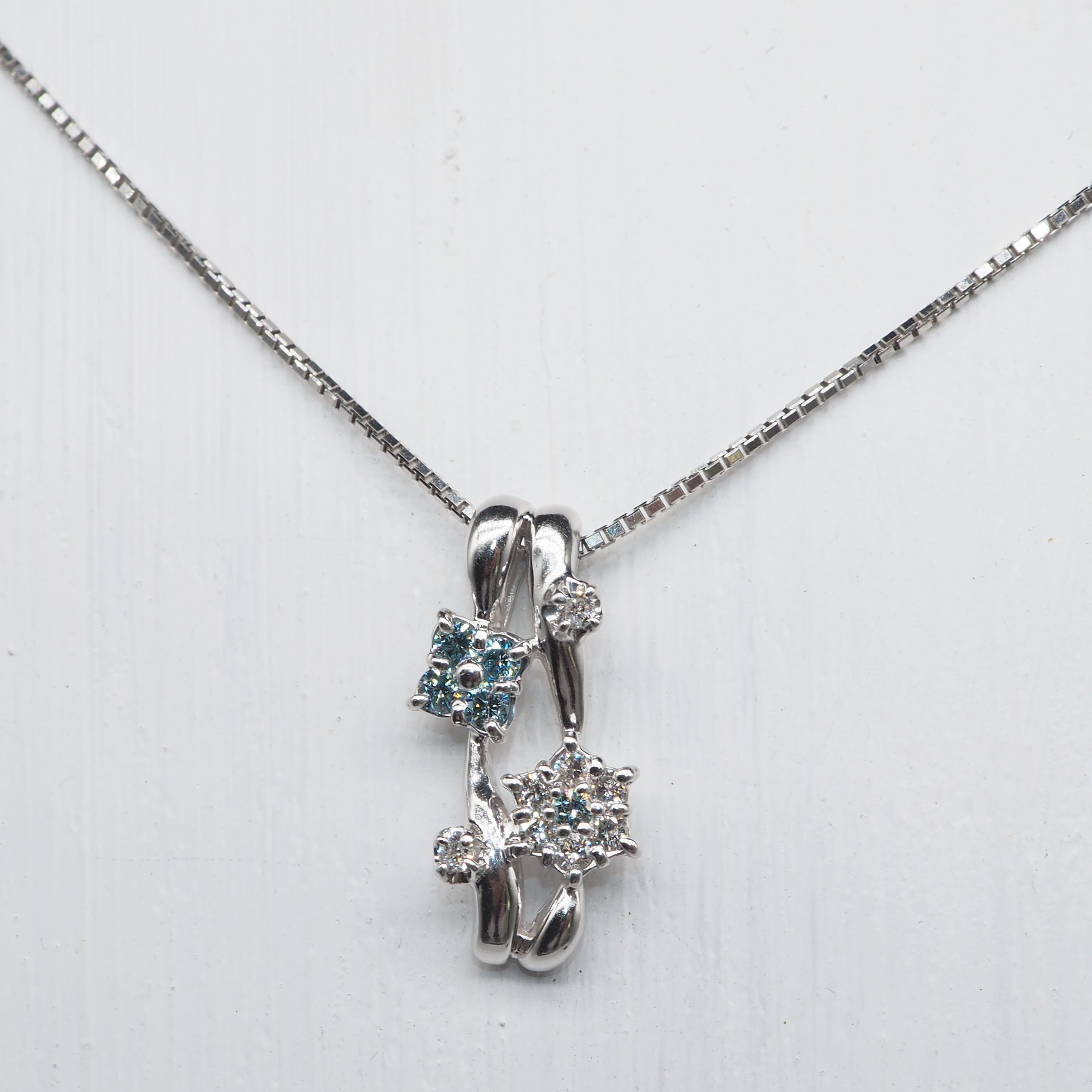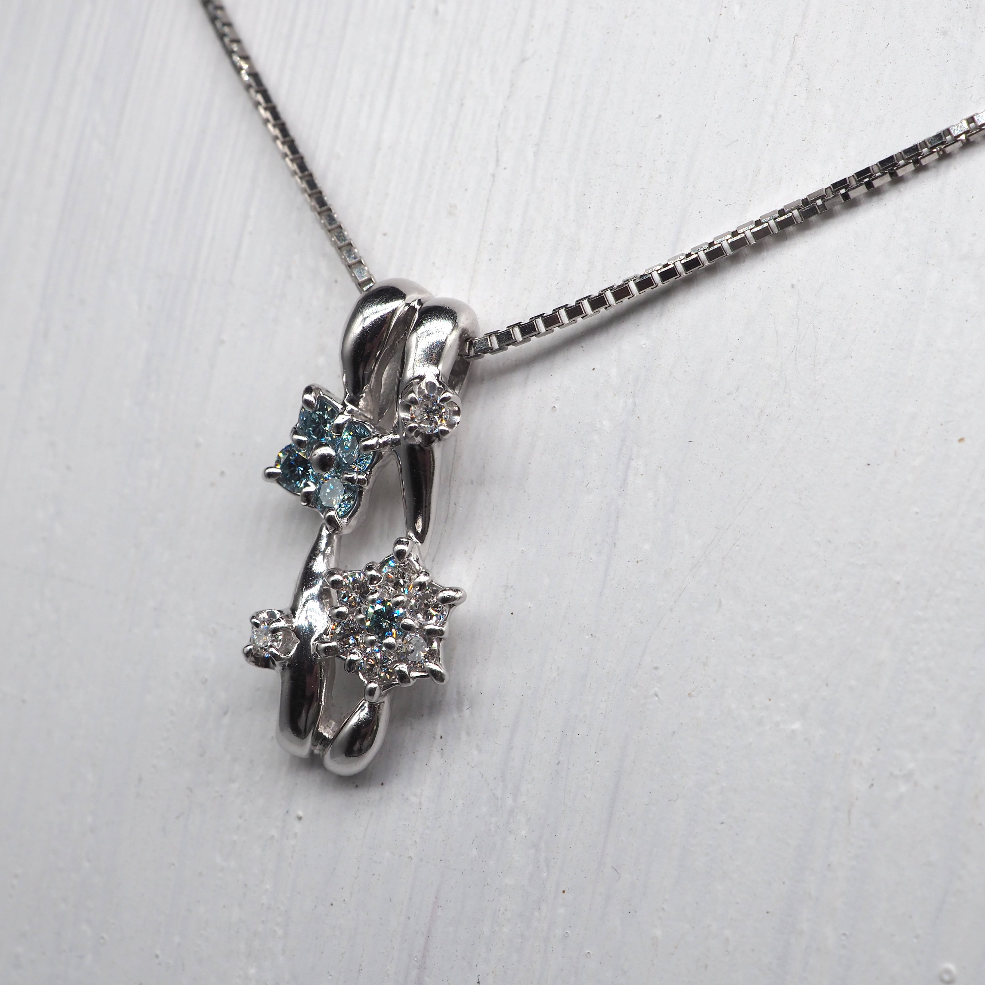 淡いブルーカラーのダイヤモンド(トリートメントダイヤ)が煌めくペンダントです。
