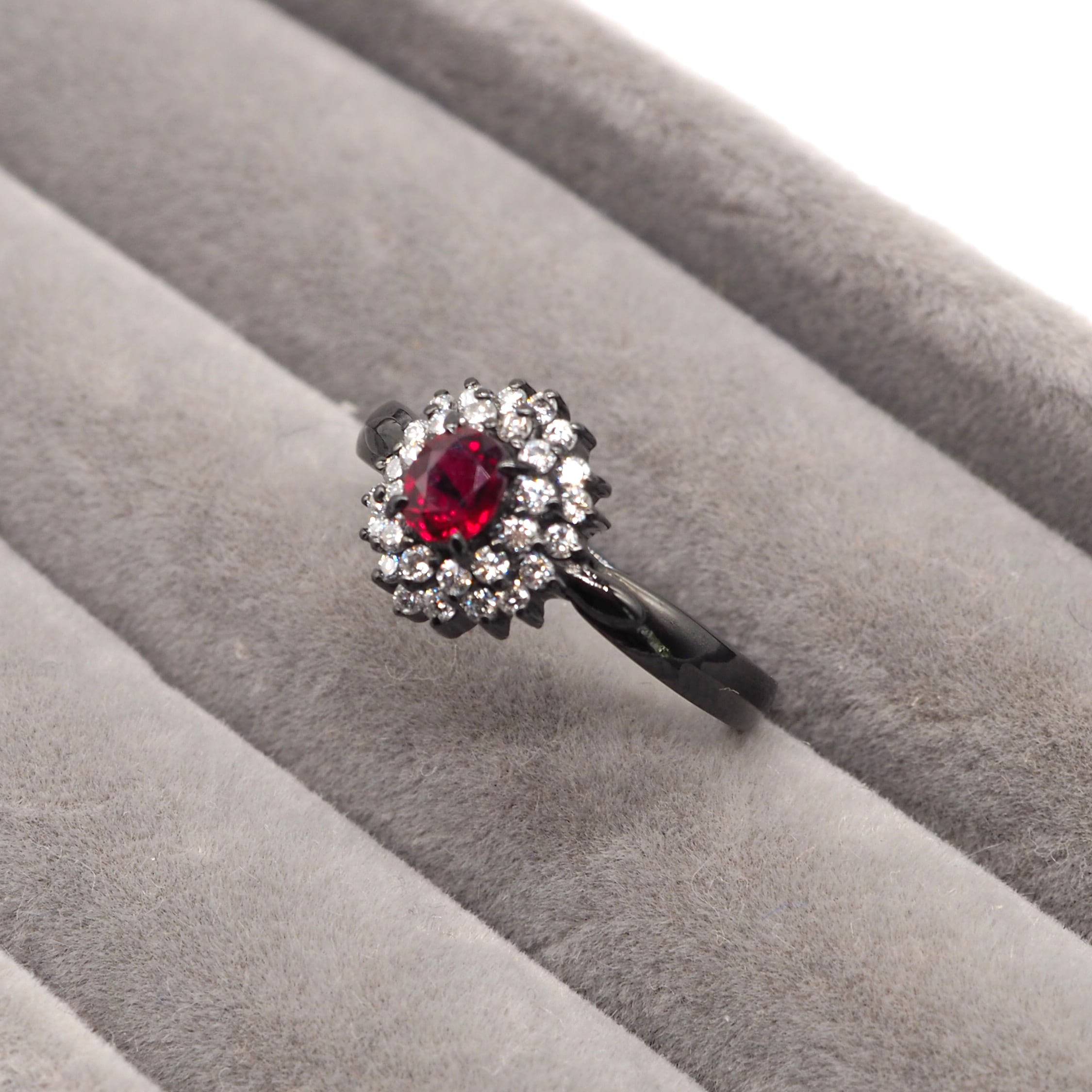 K18/Pt900 ルビー リング ブラックメッキ 昭和レトロ